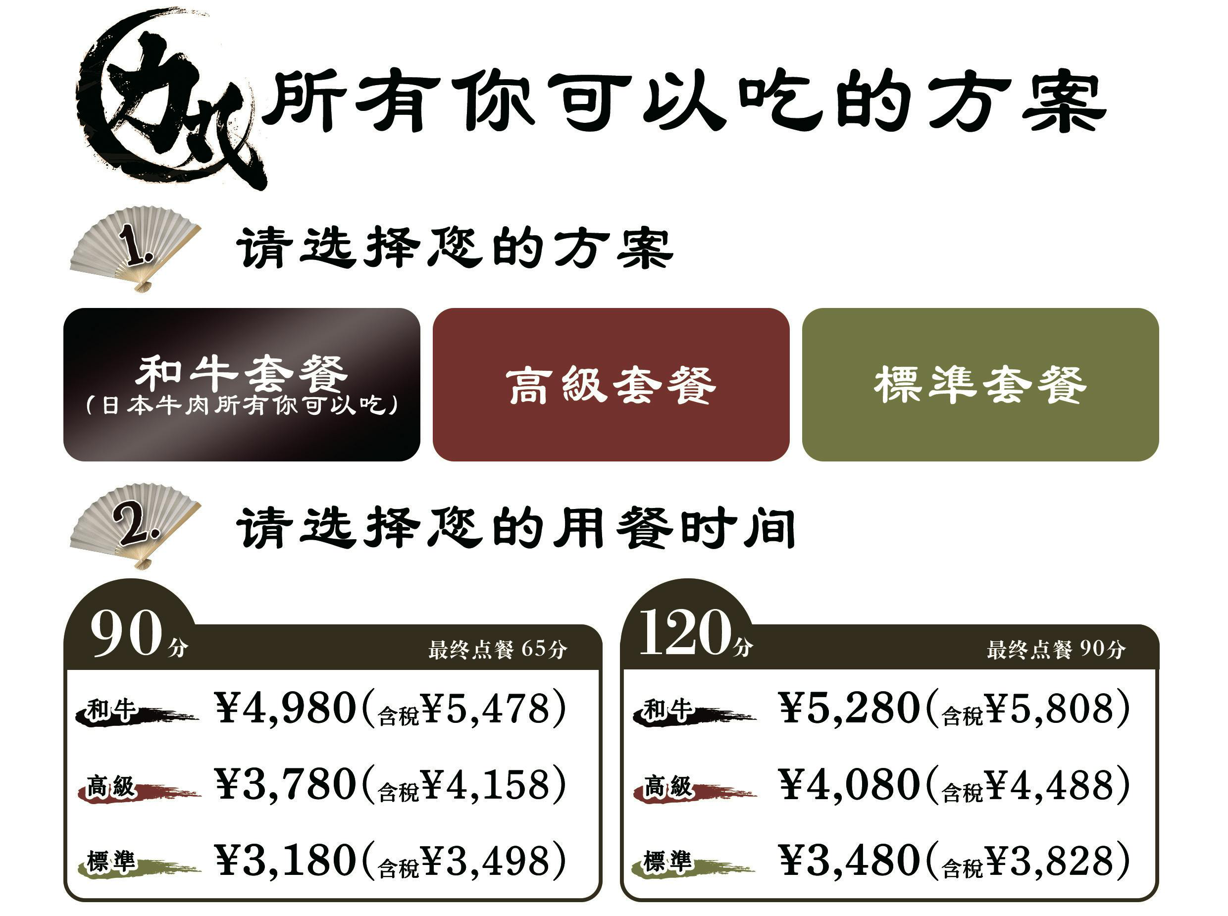 彬量的3,480⽇元吃到飽,請選擇?所喜好。